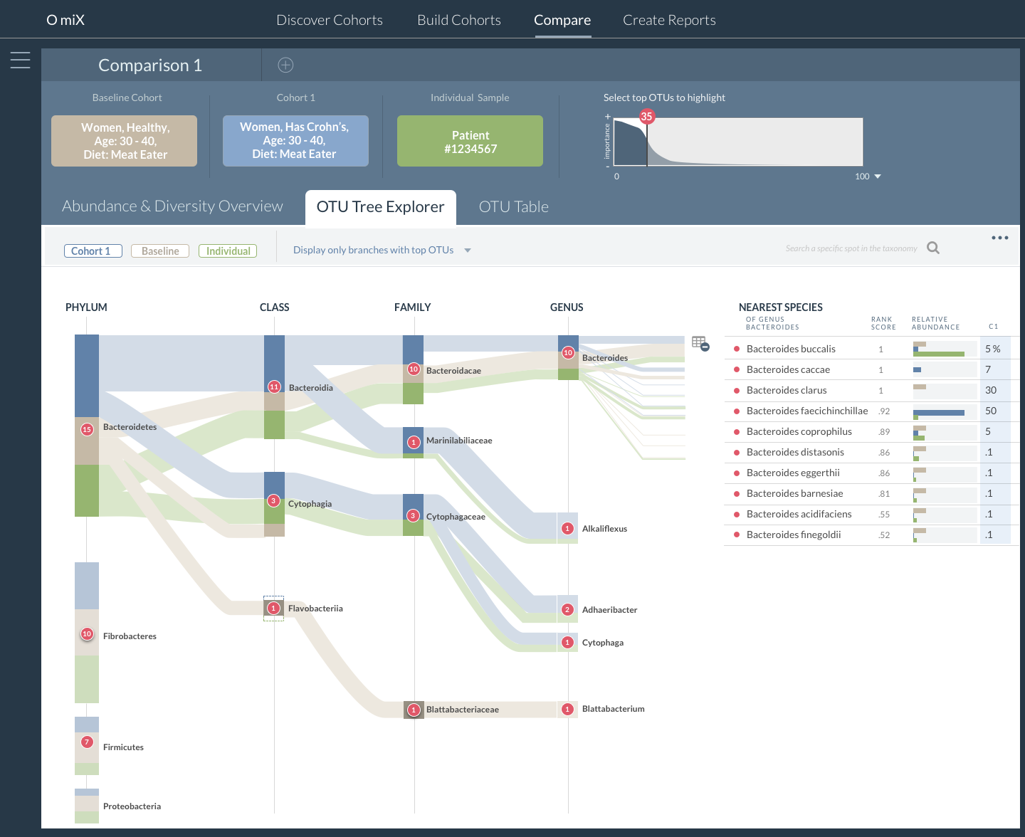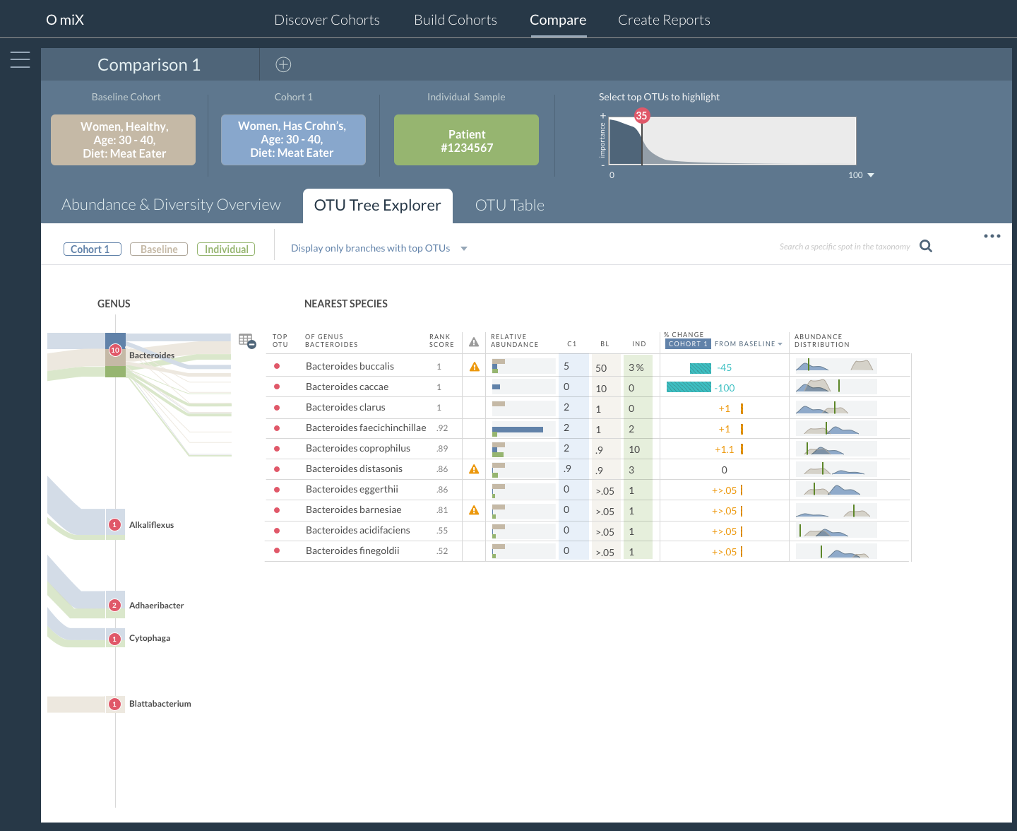 OmiX: Cohort Comparison at All Taxogenomic Levels Using the OTU Tree Explorer Visualization